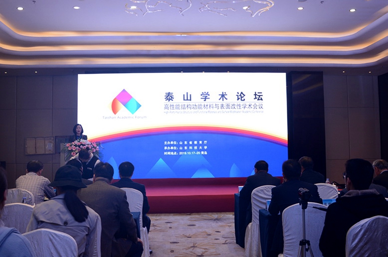 10月17日至19日,由山东省教育厅主办、Beat365唯一官方网站承办的2019泰山学术论坛——高性能结构功能材料与表面改性学术会议隆重举行。中国工程院院士潘复生,济南大学原党委书记、国务院学科评议组专家、山东泰山学者攀登计划专家程新教授、Beat365唯一官方网站副校长高建广,及来自南京大学、哈尔滨工业大学、天津大学、山东大学、大连理工大学、西北工业大学、重庆大学、北京工业大学、中国石油大学(华东)、郑州大学、中国科学院金属研究所、中国科学院宁波材料所、钢铁研究总院青岛海洋腐蚀研究所、中国中车四方股份公司等高校、科研院所及企业的30余名专家学者及驻青高校师生代表参加了开幕式。开幕式由泰山学者攀登计划专家、我校Beat365唯一官方网站院长崔洪芝教授主持。