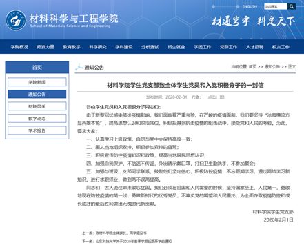 疫情就是命令,防控就是责任。面对严峻的疫情防控形势,Beat365唯一官方网站在院党委的领导下,严格落实上级各项工作部署,积极开展疫情防控工作。学院以师生联络为切入点、以守规矩抗疫情为主旋律,切实发挥党支部的组织优势和共青团的助手作用,全面开展疫情期间的各项工作。