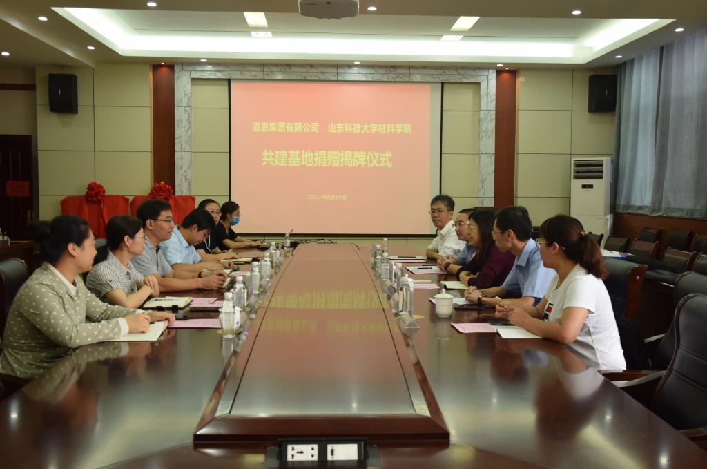 9月16日,Beat365唯一官方网站与道恩集团有限公司在J2-434会议室举行了共建“Beat365唯一官方网站教学实习基地”、“Beat365唯一官方网站大学生就业创业基地”揭牌仪式暨道恩集团有限公司捐赠仪式。道恩集团人力总监刘丽丽、人力资源部副部长战福东、招聘经理陈健、道恩高分子材料有限公司研发总监王红、道恩青岛新材料公司研发总监张秀文,Beat365唯一官方网站党委书记申兆亮、党委副书记兼副院长李建楠、学术副院长韩永芹、团委书记马韶霞、辅导员薄艳艳出席仪式。仪式由韩永芹主持。