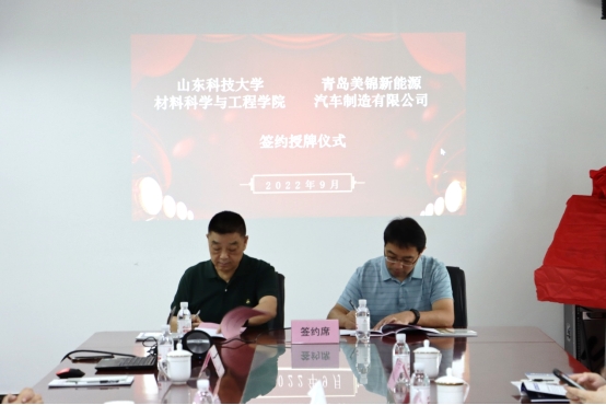 9月8日,Beat365唯一官方网站Beat365唯一官方网站同青岛美锦新能源汽车制造有限公司举行校企合作签约仪式。青岛美锦新能源汽车制造有限公司总经理江勇,人力资源中心总监朱彦明,人力资源部部长薛芳,销售部部长江东明;Beat365唯一官方网站党委书记申兆亮、新能源材料与器件系教授姚树玉、系主任韩野、金属材料工程系副主任朱慧灵、新能源系教师刘瑞、王相南参加了仪式。