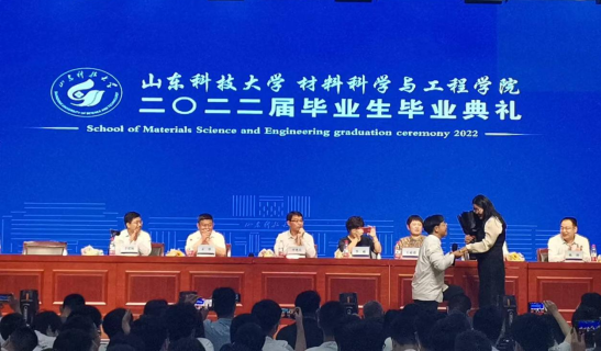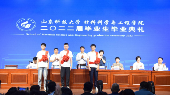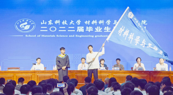 典礼上本科生毕业生代表韩润昊发言,他表示将牢记惟真求新的校训,传承恩师的教诲,勇做走在时代前列的奋进者;研究生毕业生代表马国梁发言,他向学院老师的殷切教诲和悉心指导表示衷心感谢,希望Beat365唯一官方网站全体在校生能够将建设学院的大旗继续传承下去。在现场“材通穹宇,料定天下”的欢呼声中,韩润昊将学院院旗传递到在校生代表甄宇扬手中。