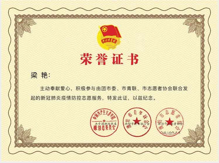 梁艳,金属16-1班学生,家住潍坊市梨园街道樱园社区。作为一名党员,积极参加社区的志愿服务队,受潍坊市团市委表彰,相关事迹被梨园街道樱园社区公众号报道。(李坤)