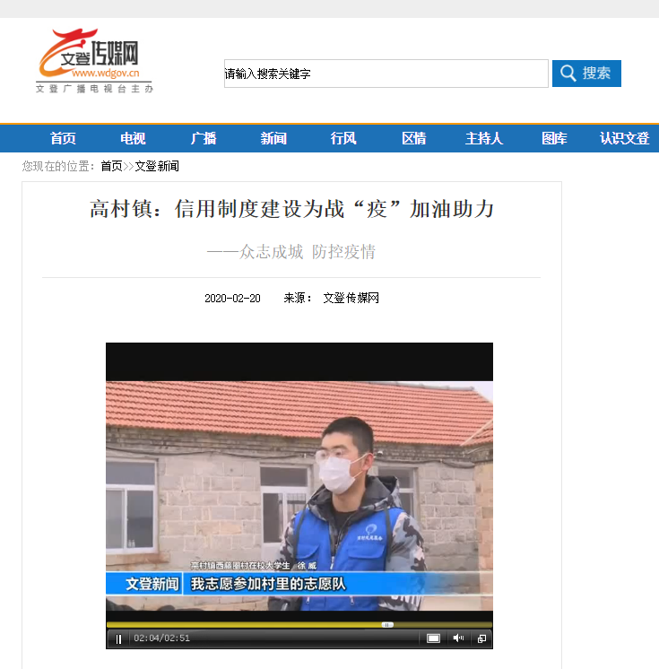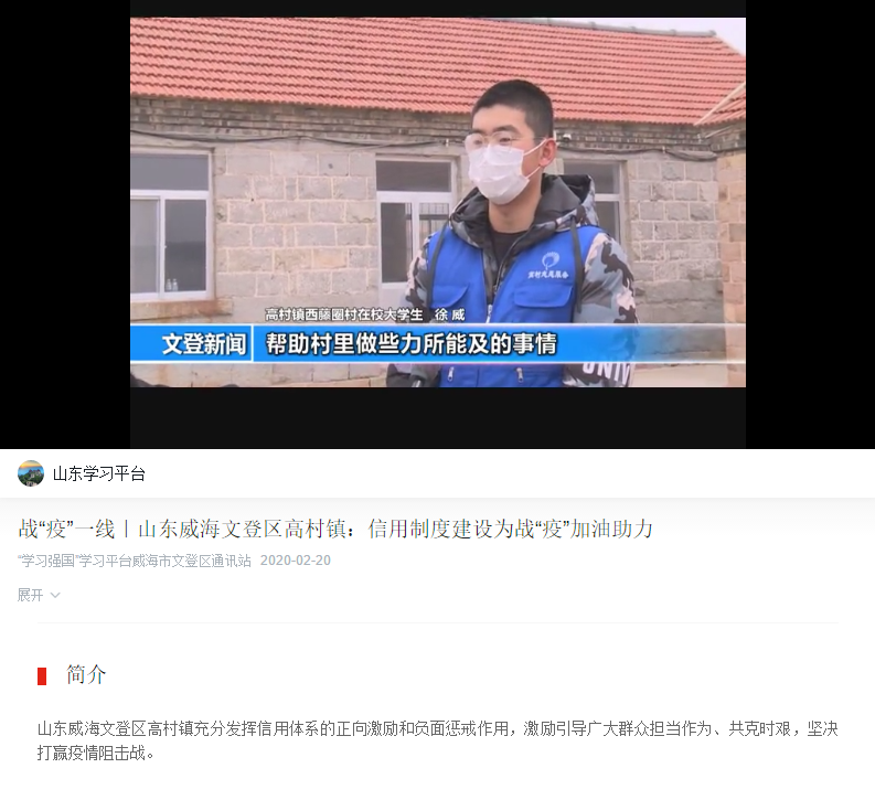 战“疫”一线|山东威海文登区高村镇:信用制度建设为战“疫”加油助力