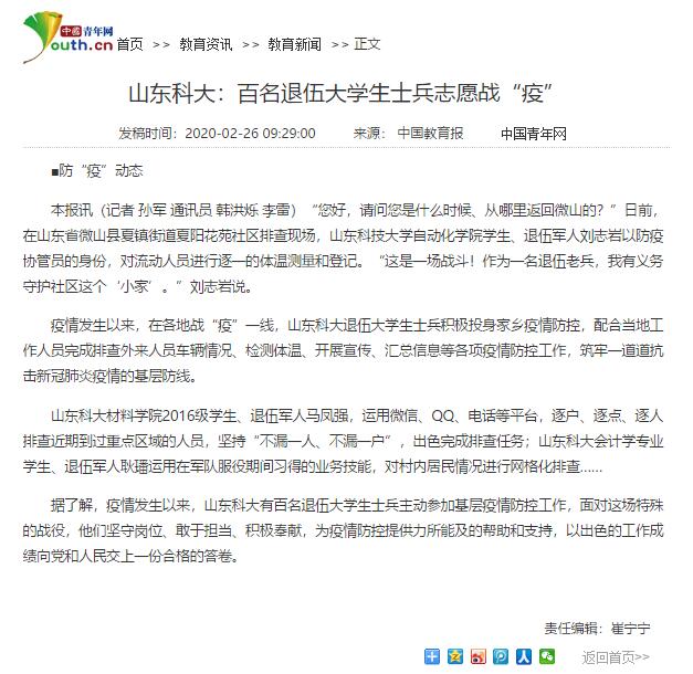 山东科大:百名退伍大学生士兵志愿战“疫”