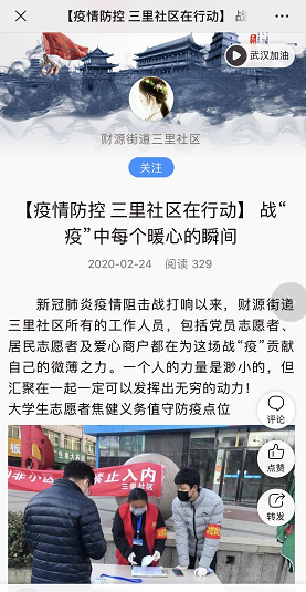 5. 财源街道三里社区微信公众号: