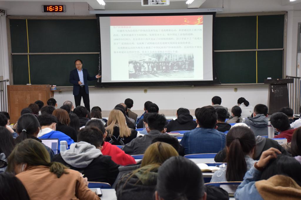 会议首先邀请马克思主义学院副院长邵勇教授作了题为《中国共产党百年光辉历程及宝贵经验》的党史学习专题报告。邵勇教授分别从“中国共产党为什么能”、“学习党史的必要性”、“中国人民为什么选择中国共产党”、“中国共产党的百年历程”等几个方面进行了详细的讲解。报告用翔实的史料、立体的视角、生动的讲解,系统回顾了中国共产党的百年奋斗史,展现了中国共产党成立100年来的光辉发展历程,深入讲述了党领导全国人民在革命和建设时期取得的一系列伟大成就,引导全体党员要从党史中汲取智慧力量,坚定理想信念,践行初心使命,在新征程上砥砺前行。