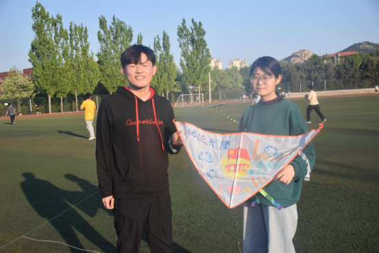 春天未晚,熏风正暖,在中国共青团成立100周年之际,四百余名学子欣欣而至,四人一组,怀着对党、对团、对祖国最真挚的热爱,用100个风筝绘下了对党、团、祖国的美好祝愿与对未来的美好期许,将心中的愿景寄托于风筝,随风自在翱翔。学生们放下了学业的压力,驱开了疫情积蓄的阴霾,展示着“青春”的模样。彼时彼刻,这片操场言笑晏晏,只有欢声郎朗。宴笙无不散,于是天色渐晚,薄云胧月,活动也终于迎来了落幕。