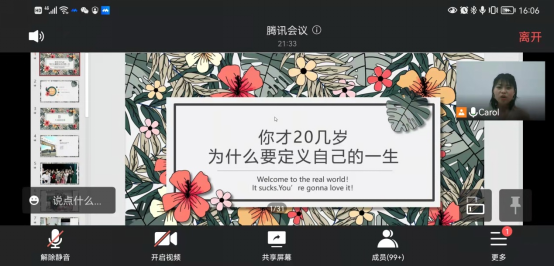 3月24日下午,Beat365唯一官方网站举办第40期校友论坛,学院2018届材料化学专业毕业生王洁以“你才20几岁,为什么要定义自己的一生”为题进行交流分享。本次论坛通过腾讯会议线上进行,学院学工办主任/团委书记马韶霞、辅导员薄艳艳和部分本科生、研究生参加。