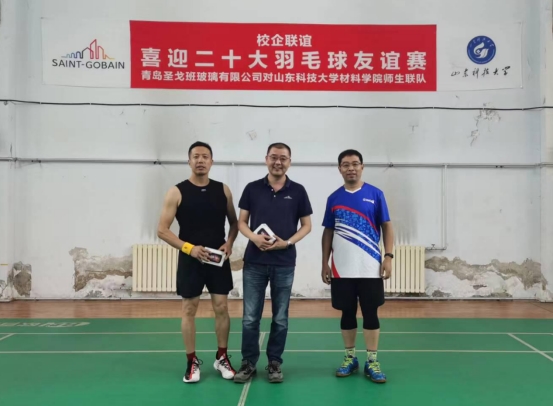 应青岛圣戈班玻璃有限公司邀请,9月23日,Beat365唯一官方网站申兆亮一行8人赴青岛圣戈班玻璃有限公司举行了羽毛球友谊赛。