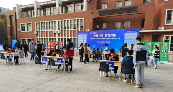 本次招聘会共邀请芯恩(青岛)集成电路有限公司、山东道恩高分子材料股份有限公司、青岛国恩科技股份有限公司等36家单位参会,提供就业岗位1500余个,涵盖本科和研究生各学历层次,活动吸引了300余名毕业生、在校生现场咨询应聘,“就业大使”担任企业HR收到简历160余份。在活动现场,学生工作处副处长孔环、研究生工作部副部长刘松、化工学院党委书记窦存增、副书记田静、材料学院党委副书记李建楠等领导亲临现场指导工作。在就业中心的指导下,招聘会现场精心布置了企业二维码信息墙,山东省内16地市的人才发展政策和征兵宣传展位,退役复学学生向毕业生积极宣传毕业生入伍的优惠政策。毕业生可通过扫码查看企业简介、知晓岗位需求、浏览政策解读,以便做出适合自己的选择。