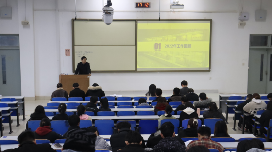 会上,团委书记马韶霞结合学校文件要求,对2022年工作进行了总结,并对新学期学生思想政治教育、共青团建设等工作进行了安排部署;李坤布置了开学初心理危机排查工作,介绍了应征入伍工作,同时鼓励同学们积极参加科创比赛;林振德总结了过去一年学生公寓管理工作,布置了新学期公寓、思想动态摸排、疫情防控、就业工作安排;石臻介绍了寒假社会实践工作,安排了第二课堂的工作和社团的工作;张韵秋对返校后信息上报工作进行了详细部署。