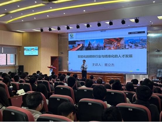 报告会上,董立杰结合自身多年从业经验为参会人员上了一堂干货满满的专业认识课程。报告从“钢铁企业--从原来,到未来”、“未来就业--想说爱你不容易”、“莘莘学子--世界属于有规划的人”、“开年寄语--会当水击三千里”四个部分给同学展示了钢铁行业的前世今生,智能化的钢铁行业震撼了同学和家长行业的认知,钢铁行业精准化的人才需求为同学未来的求学、职业规划提供新的蓝图。