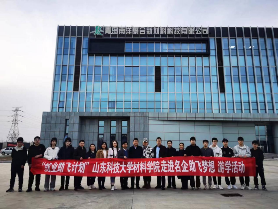 金能化学(青岛)有限公司人力资源部经理王雅妮、青岛南洋聚合新材料科技有限公司董事长孙志强,分别对学院领导老师的到访表示热烈欢迎,并从企业发展与经营、主要产品及应用领域、企业价值观、发展愿景等方面进行详细介绍,带领师生参观了生产基地及产业园区。
