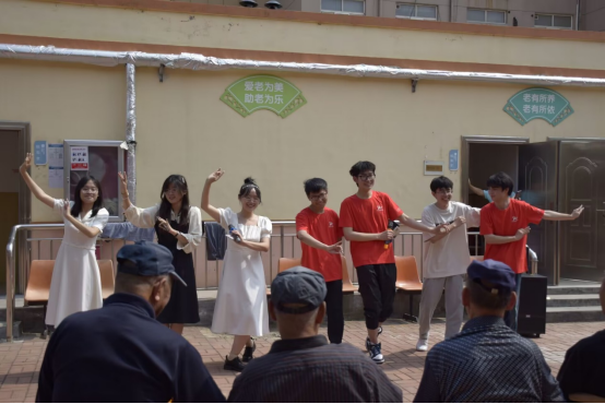 活动中,志愿者陪伴老人聊天,帮助老人打扫卫生。志愿者为老人们表演了精心准备的文艺节目,老人们也积极参与互动。节目表演结束后,老人们和志愿者留影合照。