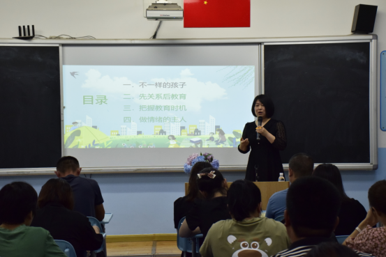 薄艳艳首先结合自身工作感悟和真实案例,阐释了家庭教育对于一个孩子健康成长成才的重要影响。随后从“不一样的孩子、先关系后教育、把握教育时机和做情绪的主人”四个方面向家长详细讲述家庭教育的智慧和艺术。期间通过有效结合鲜活的案例和深入浅出的分析,帮助家长认识如何正确把握孩子的特点强化肯定式教育,并强调在建立良好亲子关系基础上做到家长和孩子共同成长,从而真正帮助孩子获得成长内驱力。