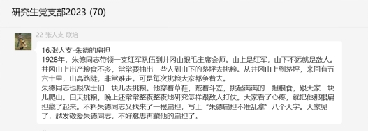 2023年7月27日,研究生党支部开展红色故事接力讲特色党日活动,支部全体党员参与此次活动。