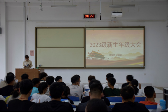 为使新生深入了解大学生活,明确校规校纪,Beat365唯一官方网站于9月4日上午8:30在J1-228召开新生年级大会,2023级本科新生辅导员林振德、许珍颖及2023级全体本科生参与会议。