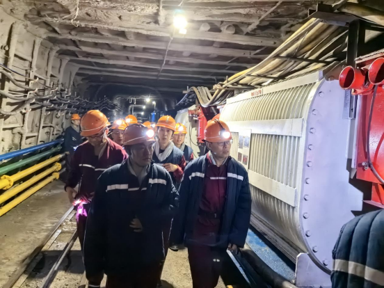 座谈会前,申兆亮、李辉平一行在杨村煤矿总工王友峰的带领下,实地参观考察了杨村煤矿。