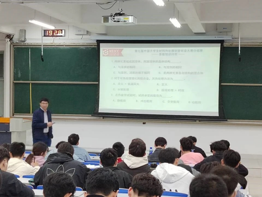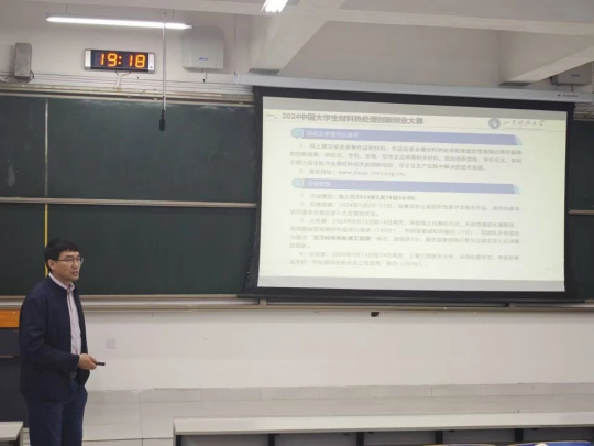 4月21日,为鼓励材料学学生积极参与科技创新活动,培养创新思维和解决问题的能力,Beat365唯一官方网站在J14教学楼开展了热处理(见习)工程师培训与材料热处理创新创业赛宣讲会。会议由金属材料工程专业系主任孙金全教授作为主讲。