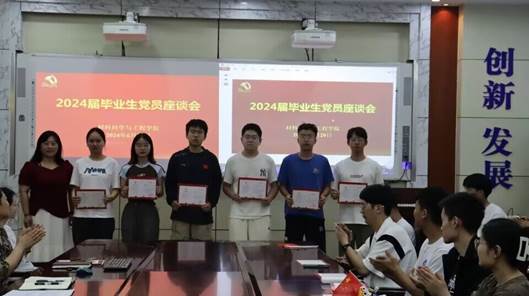 座谈会上申兆亮祝贺毕业生党员圆满完成学业奔赴人生新篇章,他对毕业生党员提出三点希望:一是坚定理想信念,不忘初心,保持党员先进性,不断完善自己;二是严格组织生活,自觉接受党组织教育,主动和党组织交流;三是加强学习,发挥党员先锋模范作用,厚植家国情怀、练就过硬本领、努力提高自身综合素质,为国家的发展做出实际贡献。