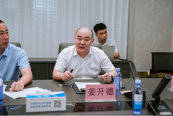 江花集团董事长姜开德详细介绍了江花集团的发展历程和公司的生产经营情况,并就山东省水表产业计量测试中心建设情况进行了介绍。