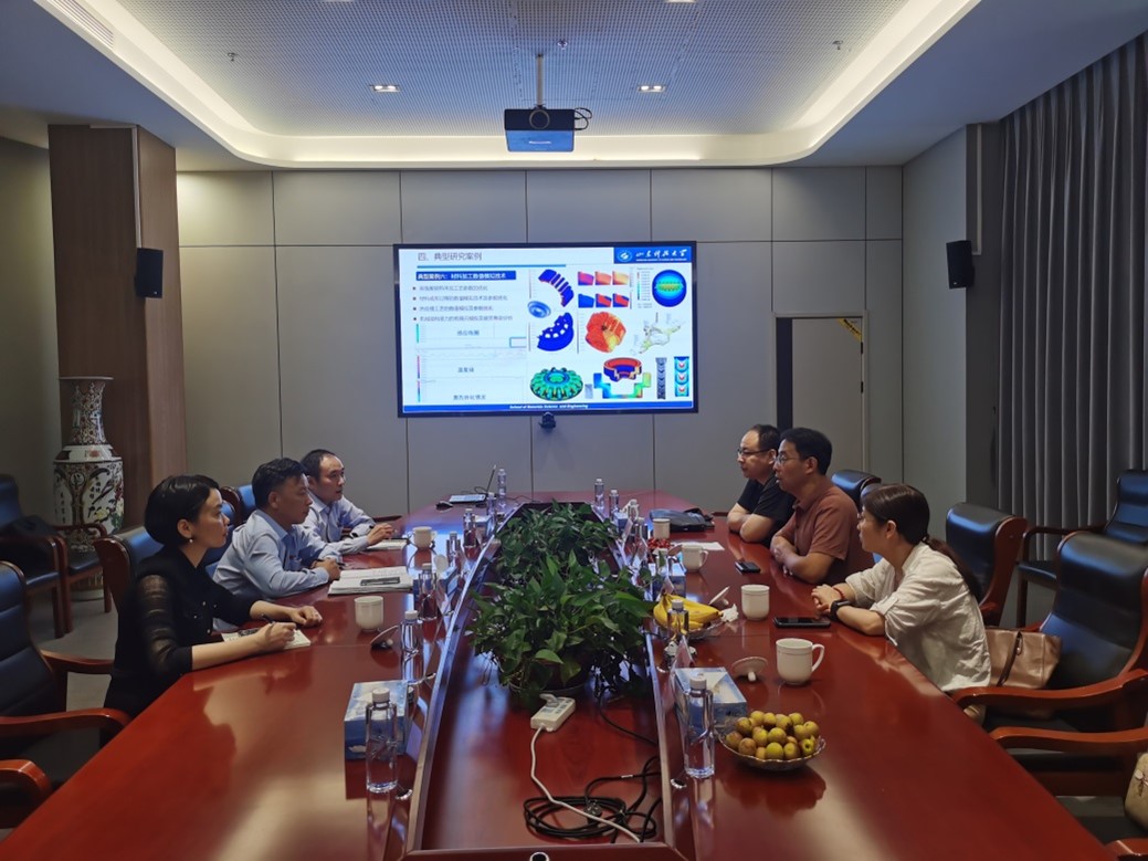 在江西永兴特钢新能源科技有限公司,总经理邹伟民、副总经理王建勇(材料1997级校友)等接待了申兆亮一行,并详细介绍了公司的发展运营情况和科技创新成果与人才队伍建设,王建勇带领参观生产现场及实验室。申兆亮介绍了学校学院的基本情况,韩永芹详细介绍了和企业发展相关的科研成果和转化案例,双方就深化产学研合作进行了深入的探讨。