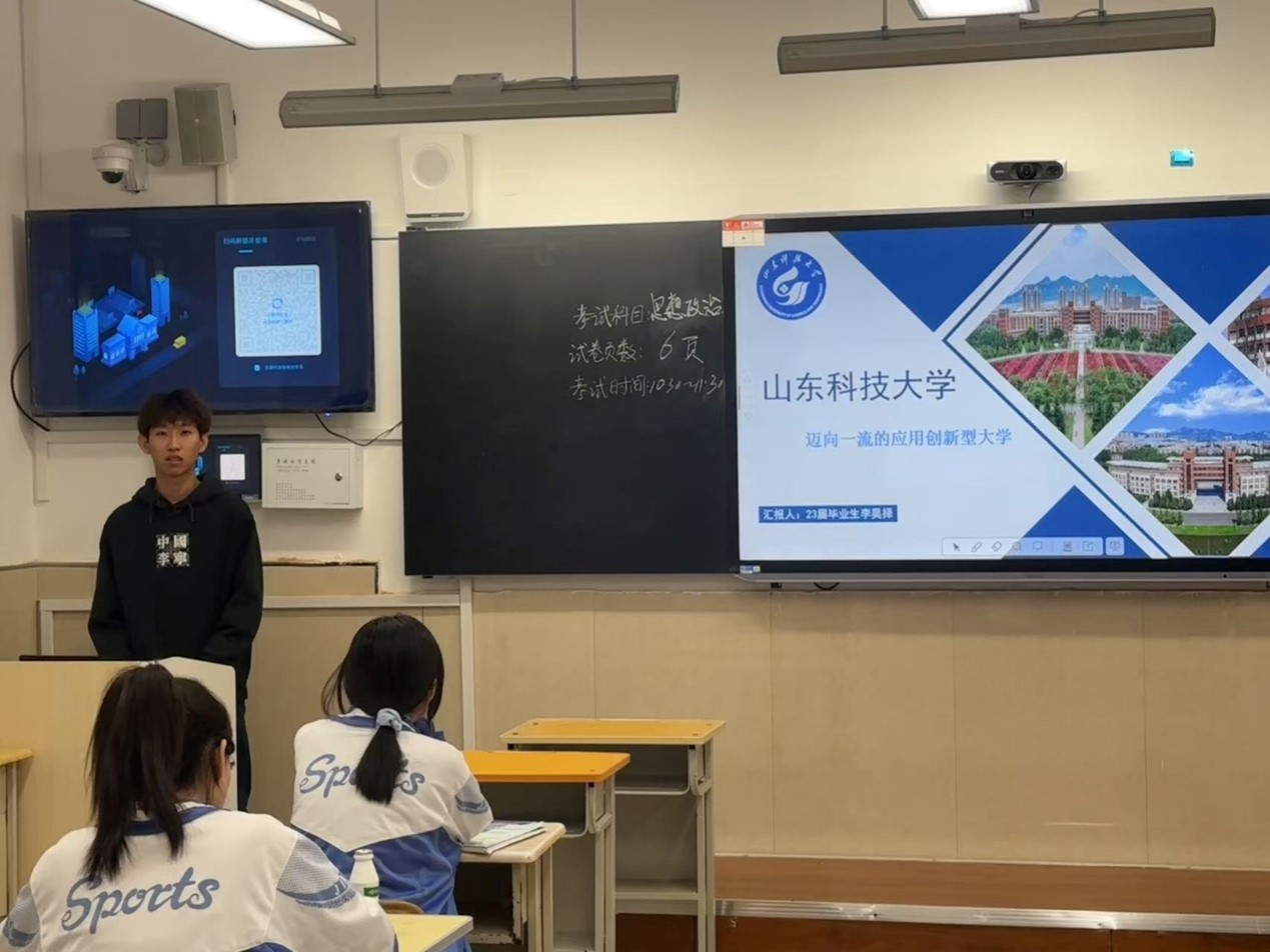 李昊择向母校的高三学生详细介绍了Beat365唯一官方网站的历史、现状、学科优势、科研成果以及校园生活。让更多高三学子了解到了山科的学术实力和科研水平,并且对其有了初步的认识。