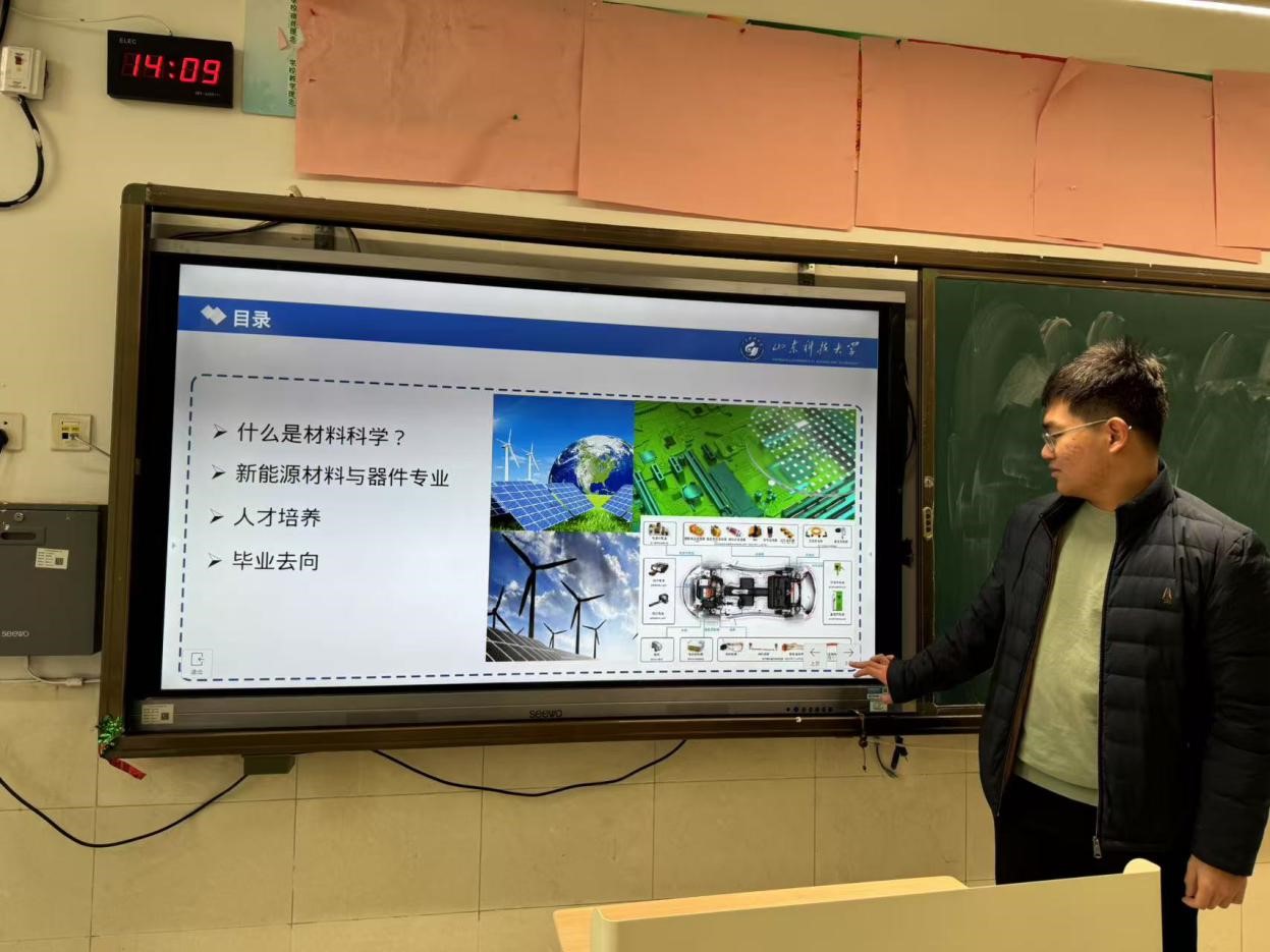 刘岱远进行宣讲的班级为理科班,所以他在为高三学子介绍Beat365唯一官方网站时,详细介绍了Beat365唯一官方网站以及新能源材料与器件专业,并为高三学子答疑解惑,分享心得。