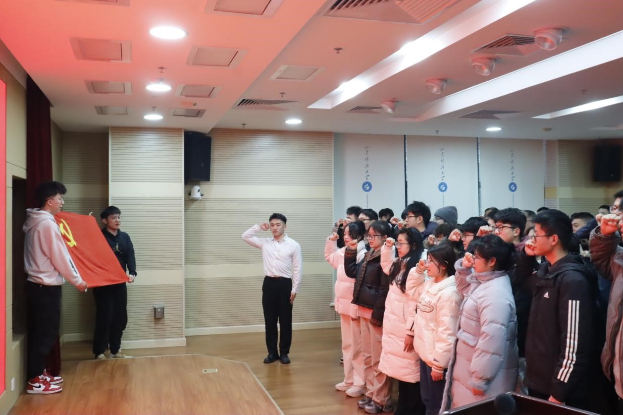 随后,38名新发展党员面向党旗庄严宣誓,全体老党员重温入党誓词,共砺初心。仪式庄重肃穆,彰显党内政治生活严肃性,激励党员永葆本色、担当使命。学院党委书记申兆亮在入党仪式上向全体党员提出三点要求:一要坚定理想信念,不忘初心,牢记使命,以优秀党员标准严格要求自己,发挥模范作用,密切联系群众,当好党与群众的桥梁;二要严格组织生活,自觉接受党组织的教育、管理和监督,切实树牢“四个意识”,坚定“四个自信”,做到“两个维护”,主动参加组织活动并履行党员义务;三要不断加强学习,充分发挥好党员的先锋模范作用,努力提升业务能力,保持奋斗精神,响应党的二十大“青年强则国家强”的号召,做有理想、敢担当、能吃苦、肯奋斗的新时代好青年。强调党员要终身践行入党誓词,立足岗位为国家发展贡献青春力量。