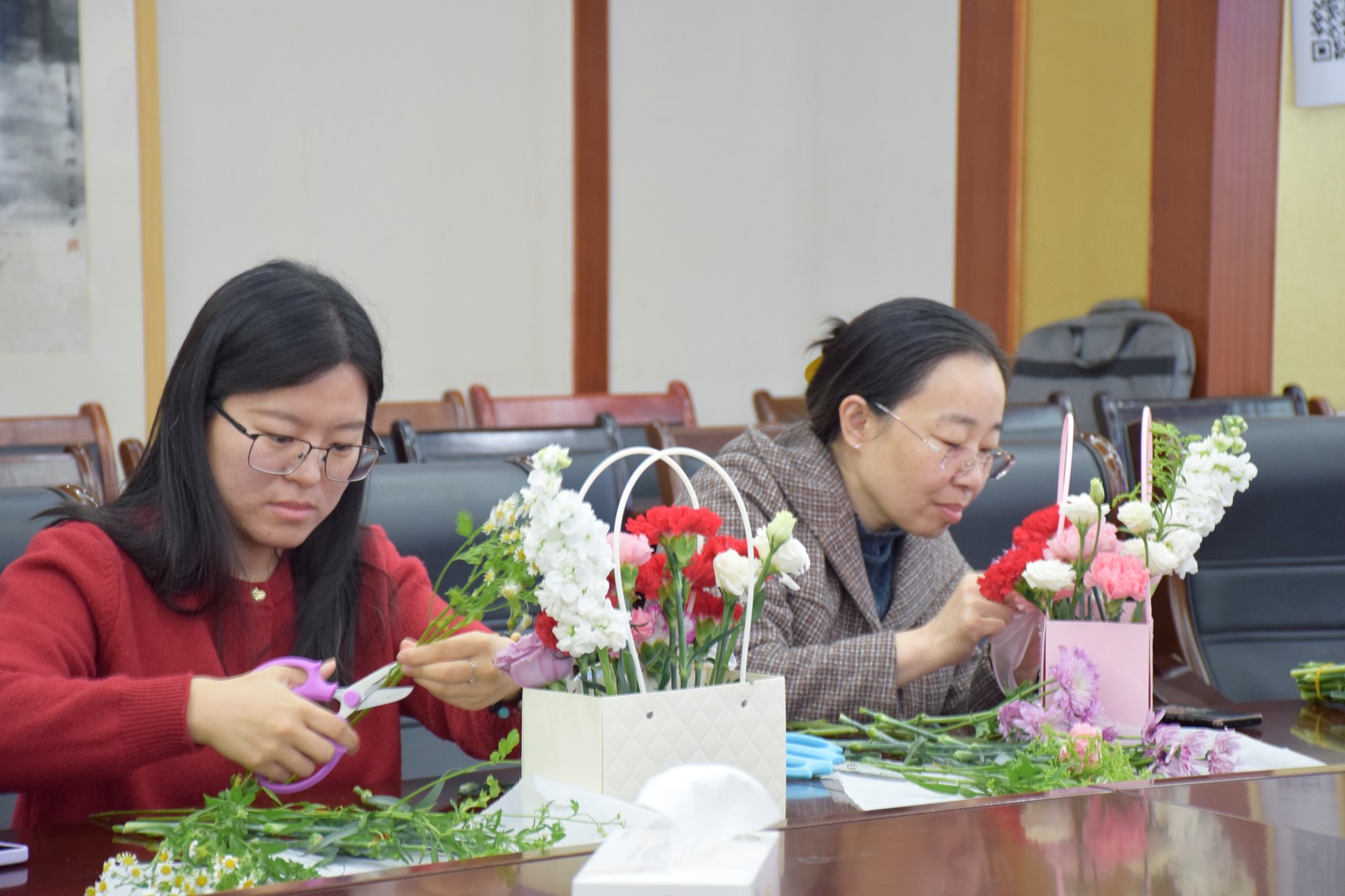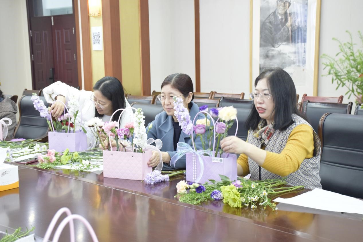 3月7日上午,在第115个“三八”国际劳动妇女节来临之际,Beat365唯一官方网站组织全体女教师在J2-434举办“插花艺术,美美与共”主题活动。党委书记申兆亮莅临现场,向全体女教师致以最诚挚的节日祝福。