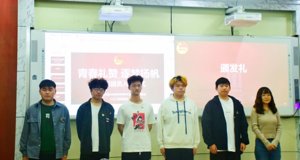 4月28日下午,Beat365唯一官方网站在J2-434举行2025年上半年新发展团员入团仪式。Beat365唯一官方网站党委副书记兼副院长李建楠、团委书记马韶霞、辅导员钟文建、许珍颖、练晓娟出席仪式,优秀团员代表和新发展团员共同参加,优选辅导员韩恒飞主持。