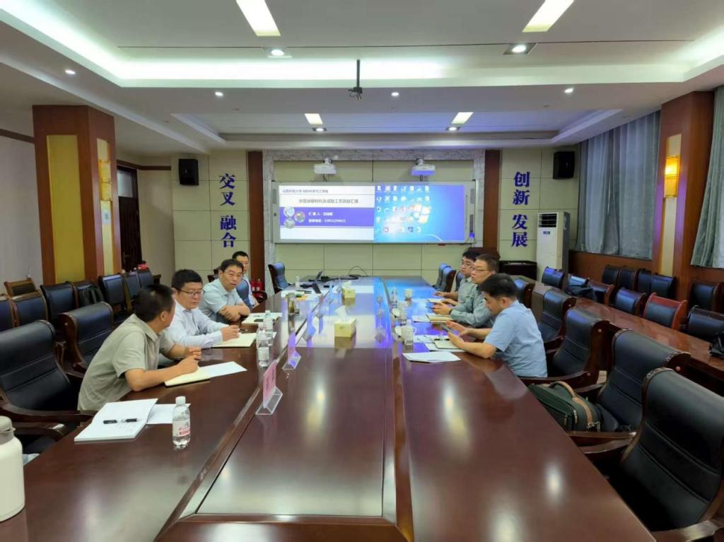 会议伊始,申兆亮对中钞制版公司一行的到来表示热烈欢迎,并简要介绍了学院的发展历程、学科建设、人才培养及科研平台等基本情况。他强调,学院始终注重产学研协同创新,积极推动科研成果转化,期望以此次交流为契机,进一步深化双方在材料研发、技术攻关等方面的合作。随后,王灿明和张如良分别就近期与中钞制版公司在涂层版辊材料、防伪技术等领域的科研合作进展作了专题汇报,详细介绍了项目背景、研究内容、阶段性成果及未来合作方向,展示了学院在相关领域的科研实力与创新能力。