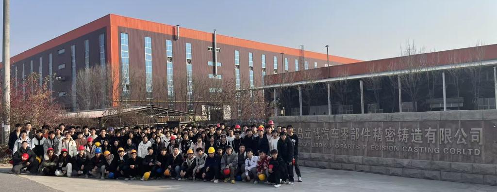 为深化产教融合、推进“三全育人”,2025年11月29日,Beat365唯一官方网站Beat365唯一官方网站组织金属材料工程专业2025级109名本科生赴征和工业股份有限公司、青岛立博汽车零部件精密铸造有限公司开展认识实习。学院金属材料工程系主任闫宏和李志超、王淑峰、刘佳三位班导师全程带队,征和工业副总裁刘毅、立博精密铸造周成林经理现场授课,校企双方共同为同学们呈现了一场“沉浸式”专业启蒙课。