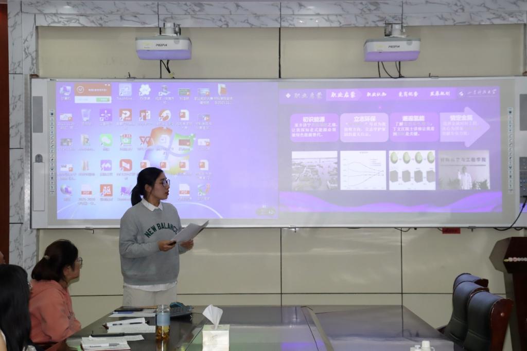 比赛中,参赛学生围绕个人科研经历、技术特长与职业规划展开七分钟左右的答辩,充分展现了对材料领域科技创新趋势的认知与职场适配思考。评委针对选手的方案设计、成果转化表达等核心要点进行提问点评,给出精准指导。