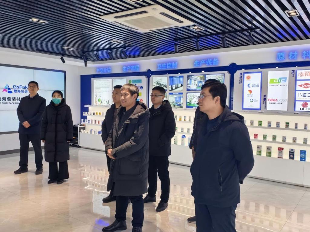 在莒南县高新区走访期间,莒南县人大副主任、十字路街道党工委书记张守金对园区内企业概况、招聘需求、研发方向等进行了介绍。李辉平一行先后参观了山东滨海新材料科技有限公司、山东永安瑞盛特种装备科技有限公司及山东碧海包装(机械)材料有限公司企业展厅和生产线,直观了解企业的生产环境、技术流程和产品应用场景等。科技创新示范园区党委副书记主任曹韶华、莒南县组织部副部长张莉莉参加了交流活动。