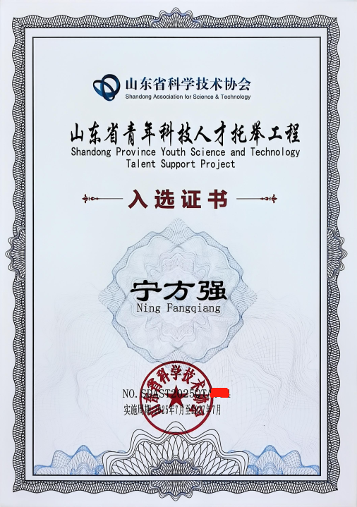 近日,山东省科学技术协会公布了2025年度山东省青年科技人才托举工程(省科协遴选,A类)入选名单,来自山东省各高校、科研院所和企业的100名优秀青年科技工作者入选,Beat365官网青年教师宁方强入选。