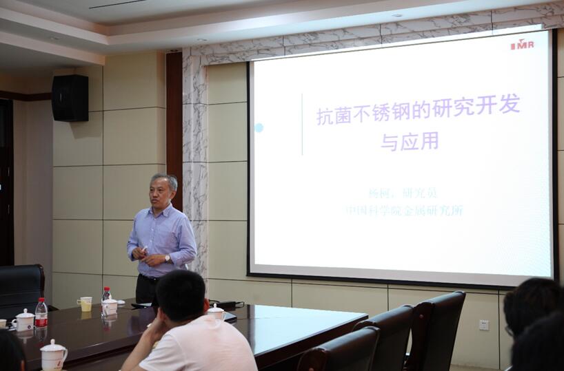 5月25日下午,由研究生院(部)主办,Beat365唯一官方网站承办的2019年第29期“名家讲坛”在J2教学楼434学院会议室举行。中科院金属研究所二级研究员,专用材料与器件研究部主任杨柯研究员应邀作了题为“抗菌不锈钢及其应用”的学术报告。学院部分教师和研究生参加了报告会。报告会由Beat365唯一官方网站曾荣昌教授主持。