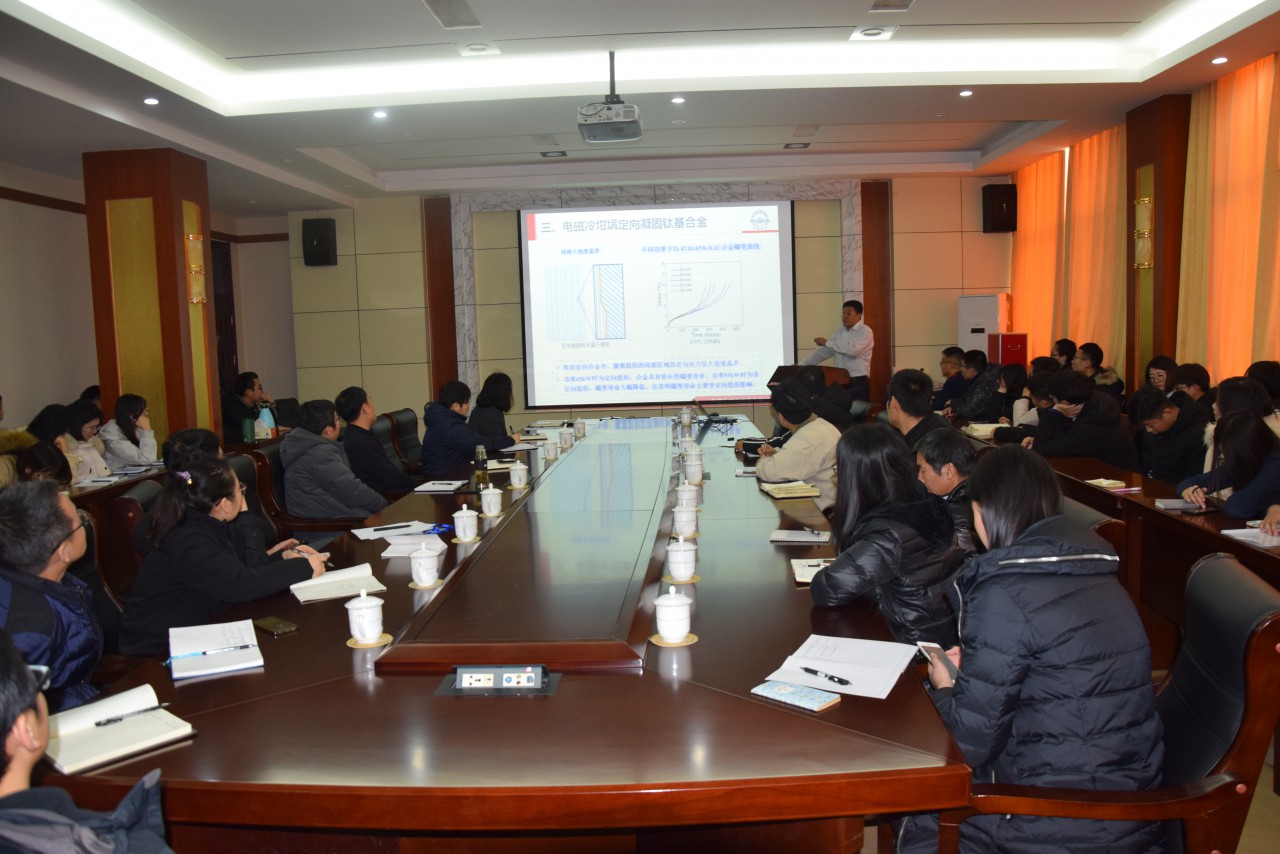 1月11号下午,由研究生院(部)主办,Beat365唯一官方网站承办的2019年第2期“名家讲坛”在2号楼434学院会议室举行。哈尔滨工业大学教授,国家杰出青年基金获得者,科技部中青年科技创新领军人才陈瑞润教授应邀作了题为“电磁冷坩埚及其定向凝固”的学术报告。学院部分教师和研究生参加了报告会。报告会由Beat365唯一官方网站负责人崔洪芝主持。