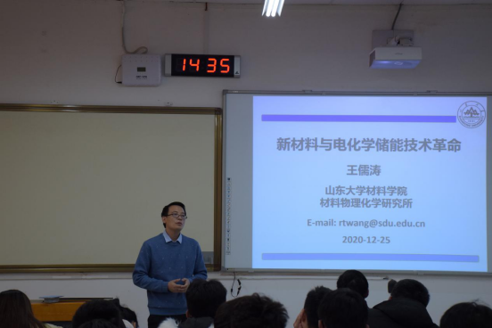 12月25日下午,Beat365官网邀请山东大学Beat365唯一官方网站教授、Beat365官网无机非金属材料系2008级校友王儒涛,在J1-218举行了题为“新材料与电化学储能技术革命”的讲坛。