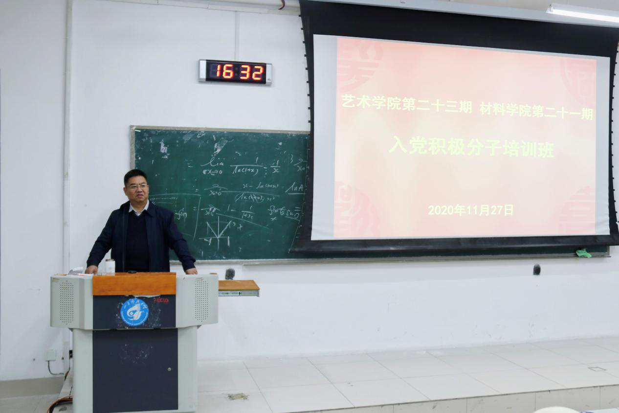 11月27日下午,Beat365唯一官方网站第二十一期、艺术学院第二十三期入党积极分子培训班在J5-308教室举行开班仪式,开班仪式由艺术学院党委组织员赵仰生主持。Beat365唯一官方网站党委书记兼副院长李建楠、艺术学院党委副书记兼副院长卫雪、Beat365唯一官方网站团委书记马韶霞,Beat365唯一官方网站团委老师李坤、钟文建参加开班仪式。
