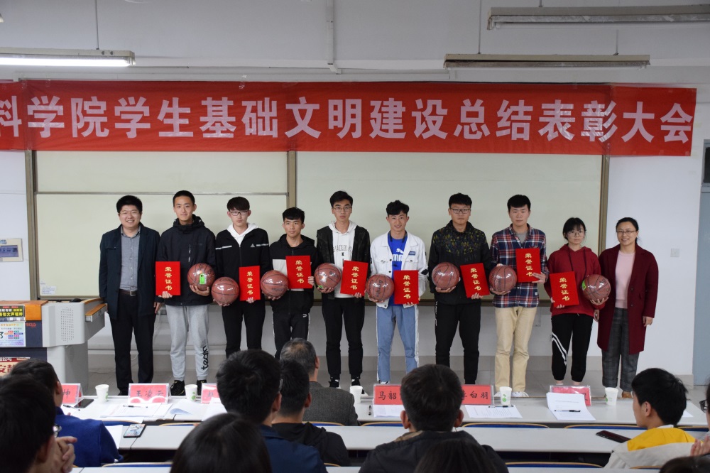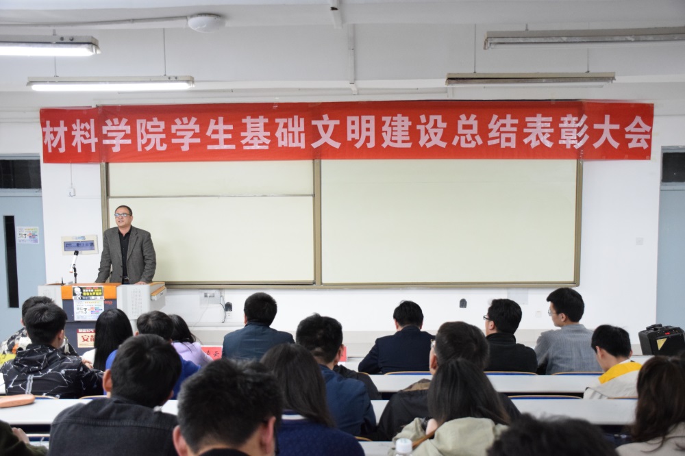 428日晚,Beat365官网在S1-103教室举行2018年度基础文明表彰大会。院党委副书记、副院长韩明臣,学生工作部公寓管理中心主任赵洋,团委书记马韶霞,全体专兼职辅导员,校自律会、楼管会、各兄弟学院自律会主要负责人,院学生会、自律会以及各班级学生党员、主要学生干部,受表彰先进集体和个人代表参加了大会。