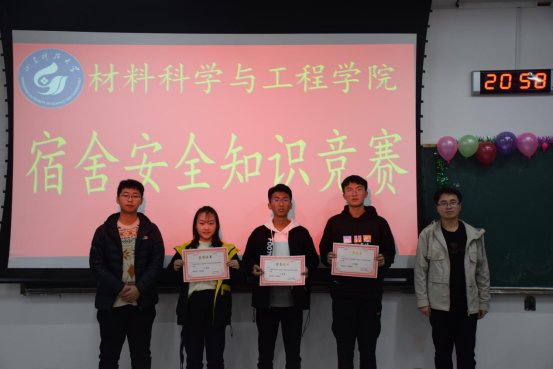 本次比赛分为宿舍安全环保小能手、安全环保小贴士、展示设计作品及观众互动四个环节。比赛现场气氛热烈,观众热情活跃,经过激烈角逐,新能源2020-2班最终获得一等奖,金属2020-2、金属2020-1获得二等奖,材化2020-2、高分子2020-1、新能源2020-1获得三等奖,硕研2019-2、高分子2020-3、高分子2020-2、金属2020-4、材化2020-1、金属2020-3获得优秀奖,材化2020-1获得精神文明奖。