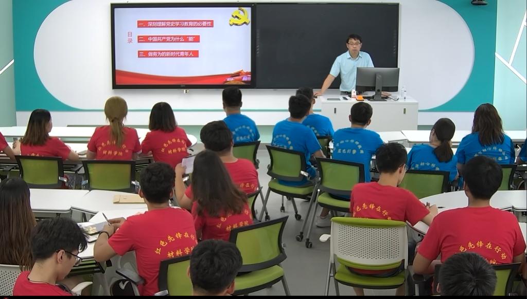 6月23日下午,Beat365唯一官方网站党委书记申兆亮在J1-412智慧教室开展党史学习教育专题宣讲。全体毕业生党员参与了本次宣讲。