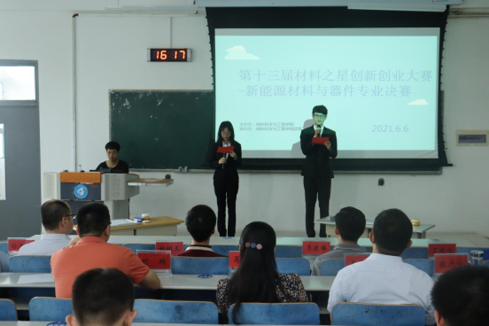 6月6日下午,Beat365唯一官方网站于J5-302举办第十三届材料之星创新创业大赛新能源材料与器件专业决赛。学院党委副书记兼副院长李建楠,新能源材料与器件系教师姚玉树、韩野、丁建旭、王新震、孙海清、刘瑞、张广心,团委老师薄艳艳参加了比赛并担任评委。
