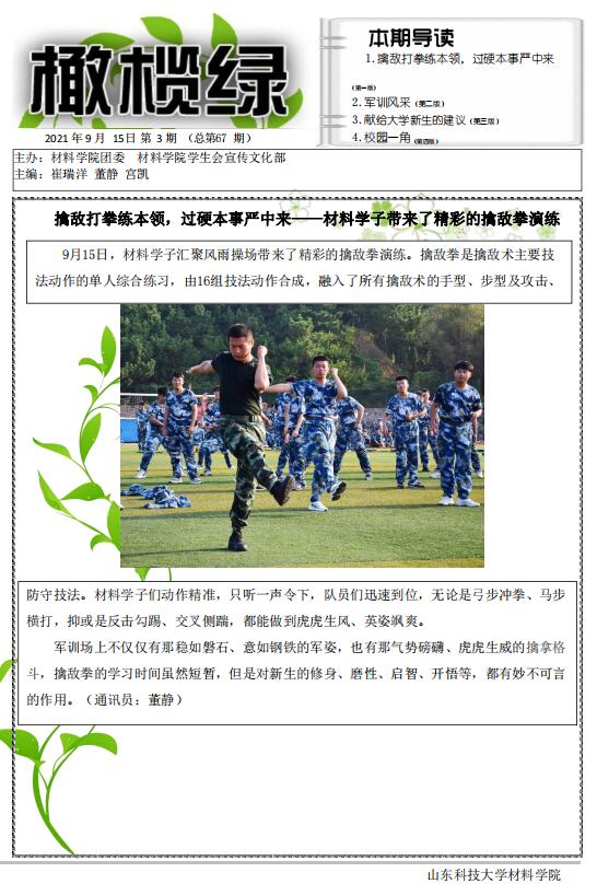 上一条:Beat365唯一官方网站军训特刊《橄榄绿》彩色2021年第四期(总第68期) 下一条:【军训系列报道四】军训场上洒汗水,材料学子展风采——新生军训进行时