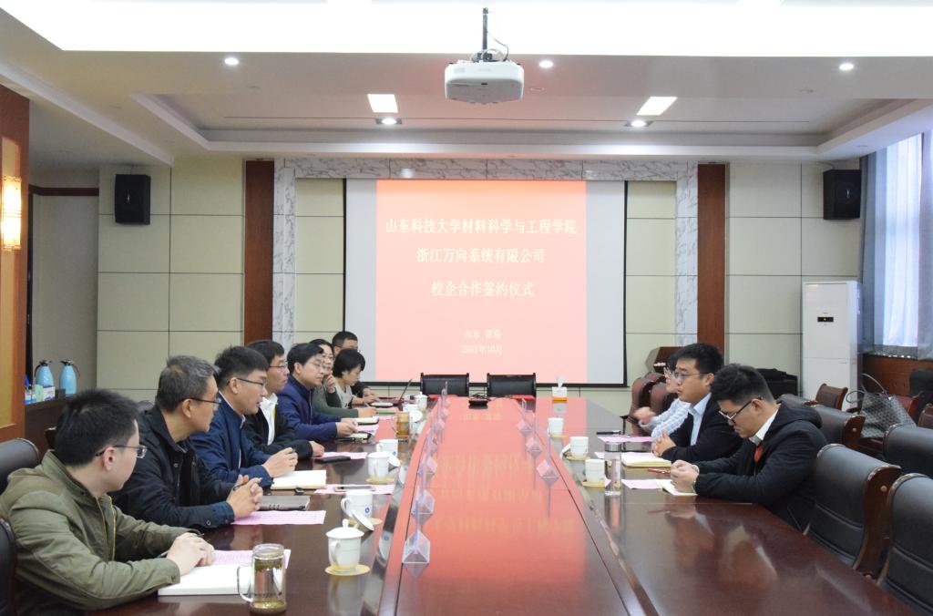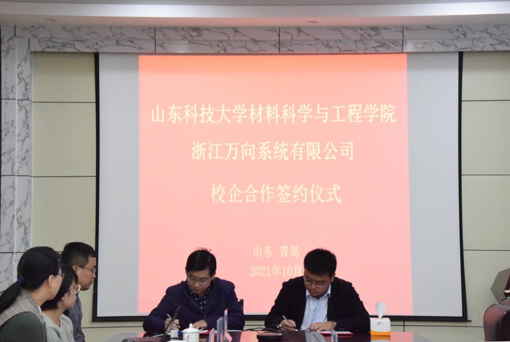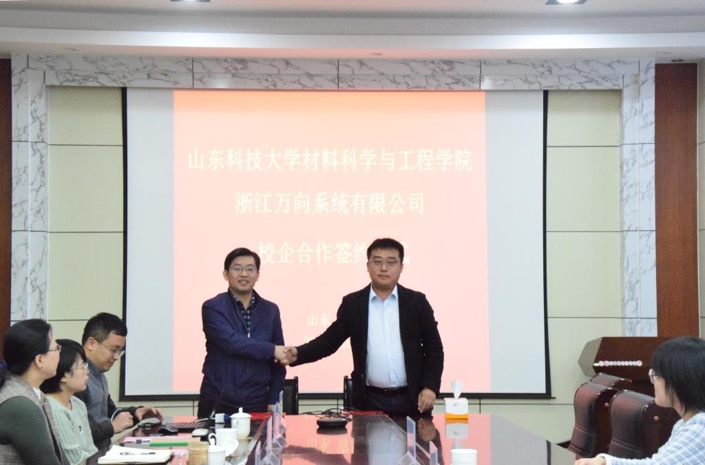 10月20日上午,Beat365唯一官方网站与浙江万向系统有限公司在J2-434举办校企合作签约仪式。浙江万向系统有限公司常务副总经理王东、市场总监章胜凯、招聘专员王瑞鑫一行3人,Beat365唯一官方网站党委书记申兆亮、党委副书记兼副院长李建楠、团委书记马韶霞、金属材料工程系系主任孙金全及部分金属材料工程系教师代表参加了签约仪式。仪式由李建楠主持。