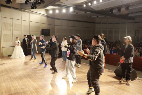 中场环节为趣味游戏——模仿大师,学院教师何海峰、钟文建、石臻积极参加,师生互动频繁,现场气氛异常火热,拉近了老师与学生间的距离。