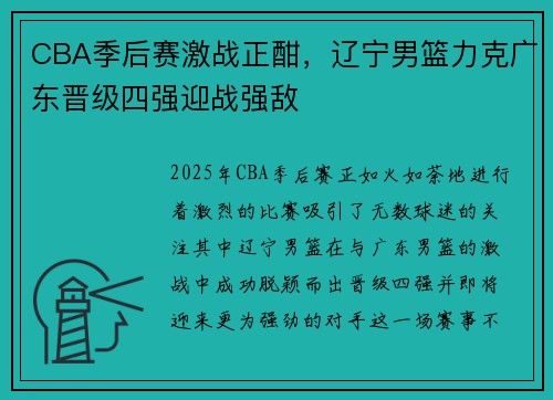 2025年CBA季后赛正如火如荼地进行着,激烈的比赛吸引了无数球迷的关注。其中,辽宁男篮在与广东男篮的激战中成功脱颖而出,晋级四强,并即将迎来更为强劲的对手。这一场赛事不仅是两支传统强队的对决,也是两队球员在关键时刻的表现较量。辽宁男篮凭借着坚韧的意志力、出色的团队配合和关键球员的发挥,力克广东男篮,晋级四强,向着更高的目标发起冲击。本文将从四个方面详细阐述CBA季后赛的激烈局面,分析辽宁男篮如何力克广东晋级四强的过程,展望未来的对决。